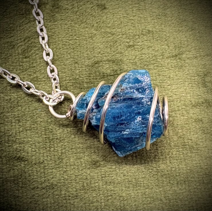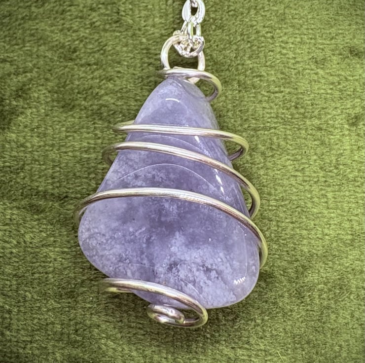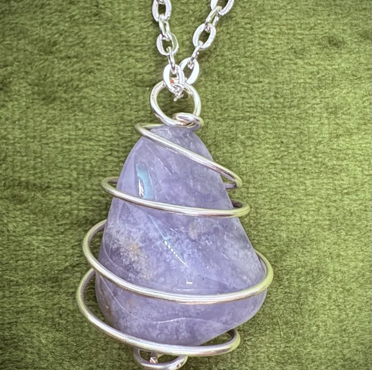 These are simple wrapped semi-precious stones - not everyone likes an intricate wire wrap make, it's more about the stone. These stones have all been spiritually cleansed. These pendants come with a 20”/50cm silver plated chain with sterling silver fixings.