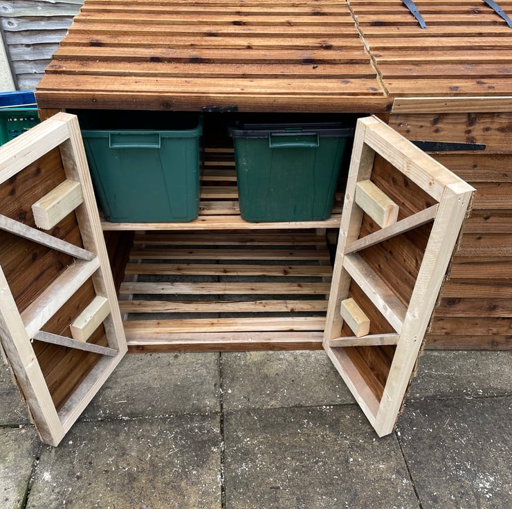 fits 1x standard 240l wheelie bin and 2,4 or 6 recycling boxs