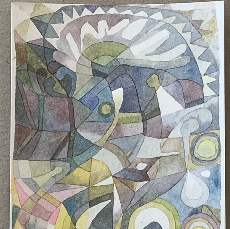 An abstract landscape made by watercolour onto 300gsm artists acid free watercolour paper using professional watercolours . The paper measures 8.5cm by 10cm. An original painting that would make an ideal gift for someone. The painting will be sent inside a board back envelope.
