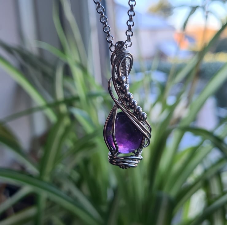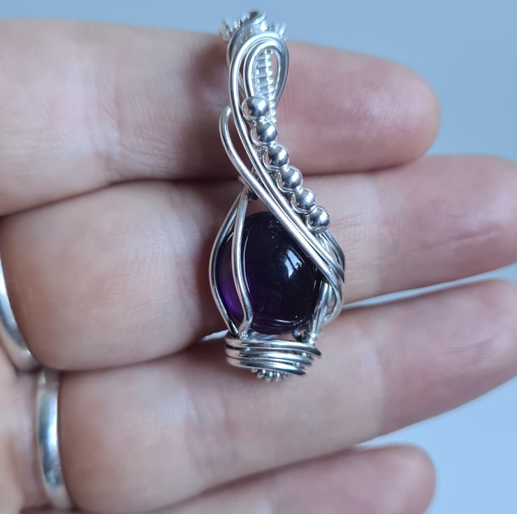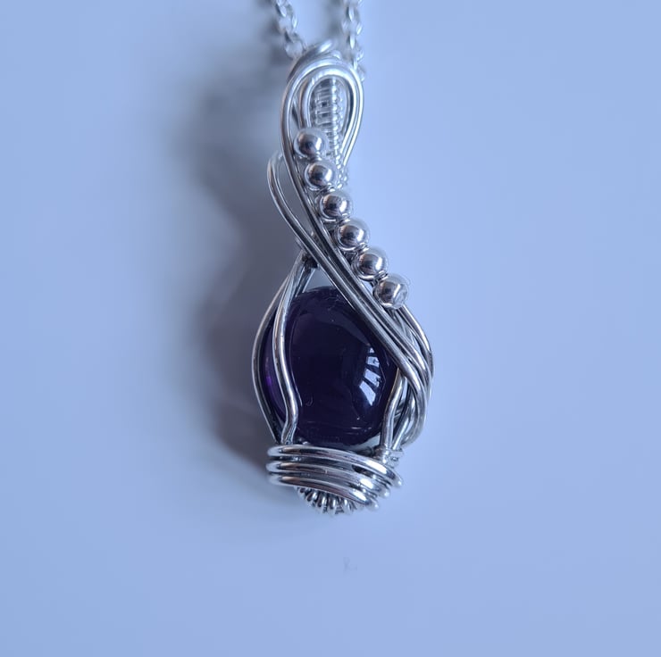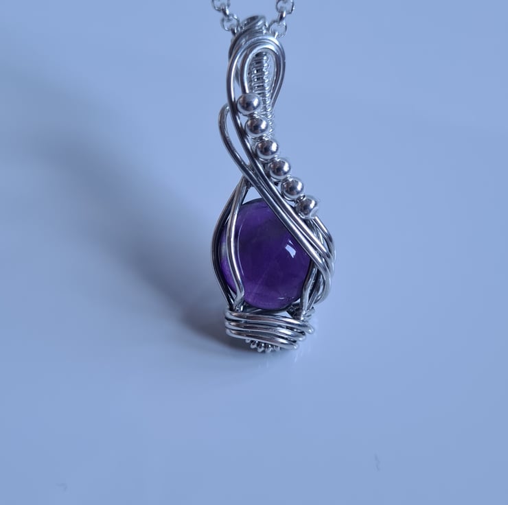 I have taken this beautiful and top quality purple Natural Amethyst crystal and handwrapped it in 925 Silver finishing with sterling silver beads. This is a lovely elegant necklace and would make the perfect gift for that special someone. Amethyst is also the birthstone for February so a ideal gift for a birthday.