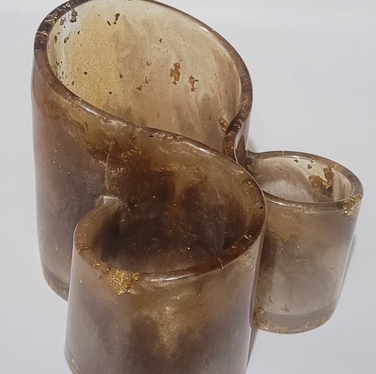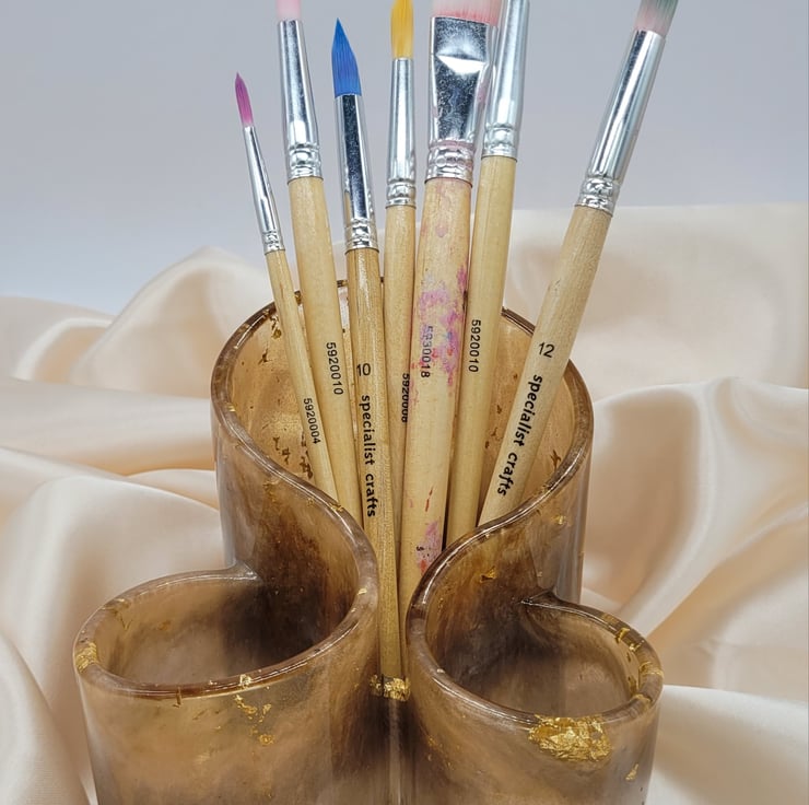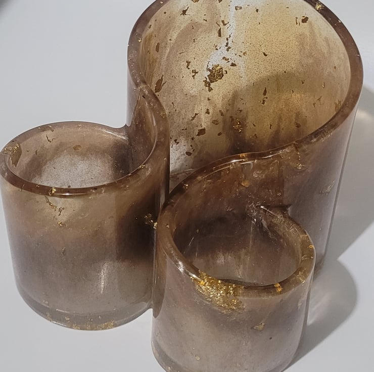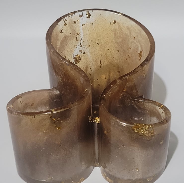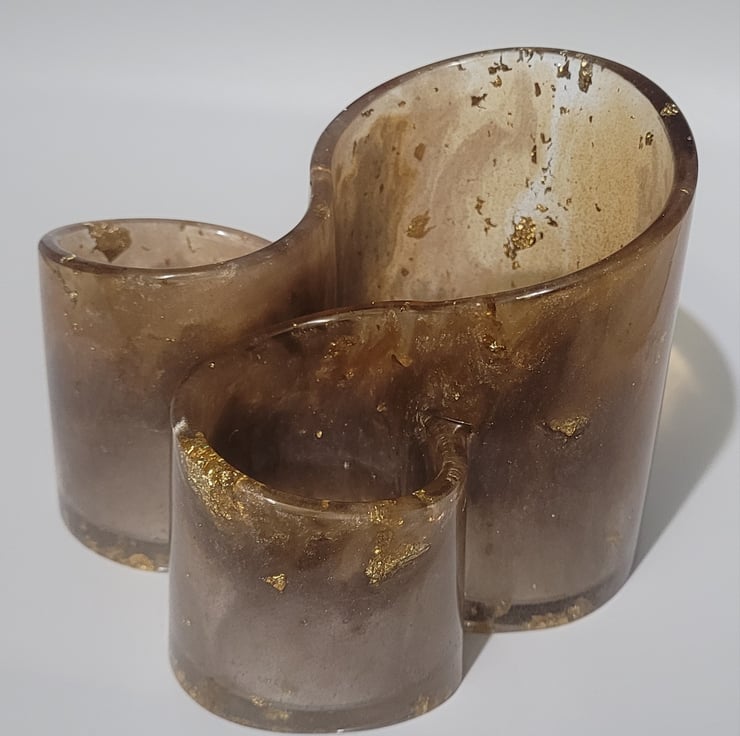 3 pot container for make up brushes or pens. Stunning, unique one of a kind.