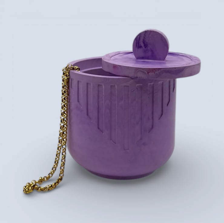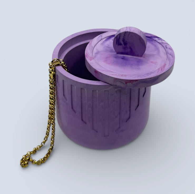 Purple jewellery box with lid, a handmade storage piece for rings, earrings and small keepsakes. This lilac marbled jewellery box adds a soft pop of colour to dressing tables and shelves and makes a lovely gift for jewellery lovers or anyone who enjoys colourful handmade decor.