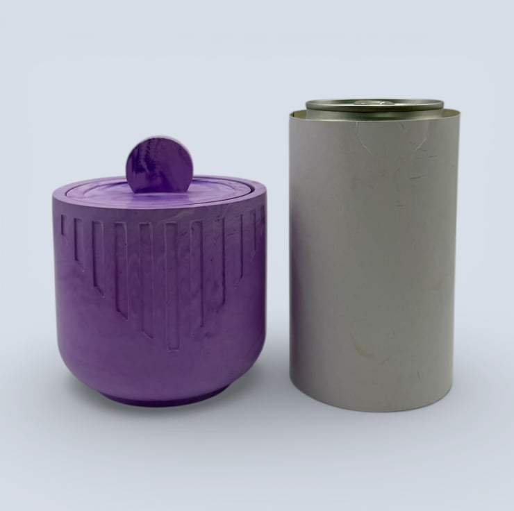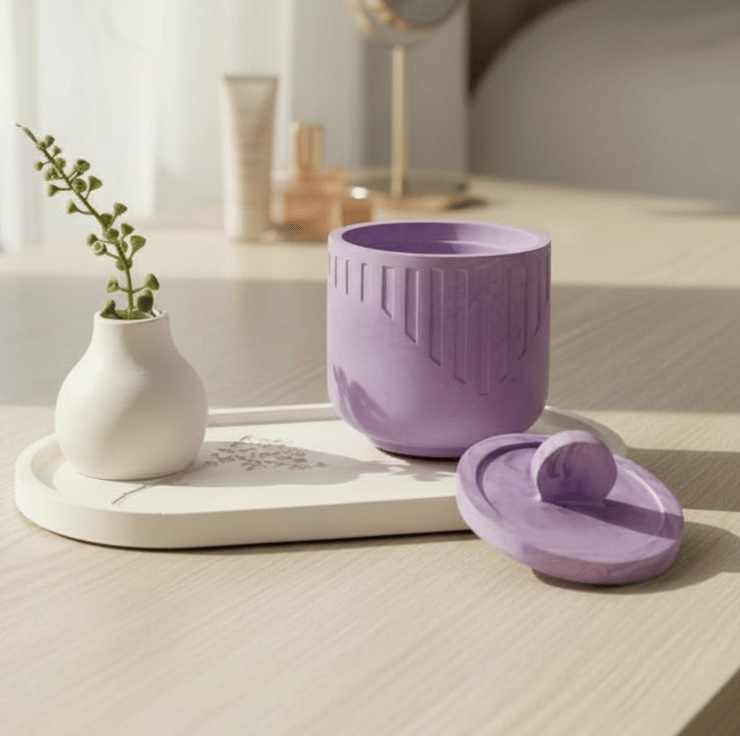 The carved vertical details give the piece a modern look while still keeping it gentle and understated. The rounded shape felt right for this colour palette, offering a sense of softness and quiet luxury. The matching lid completes the design, and the domed handle adds a small sculptural touch that feels pleasing to hold.
