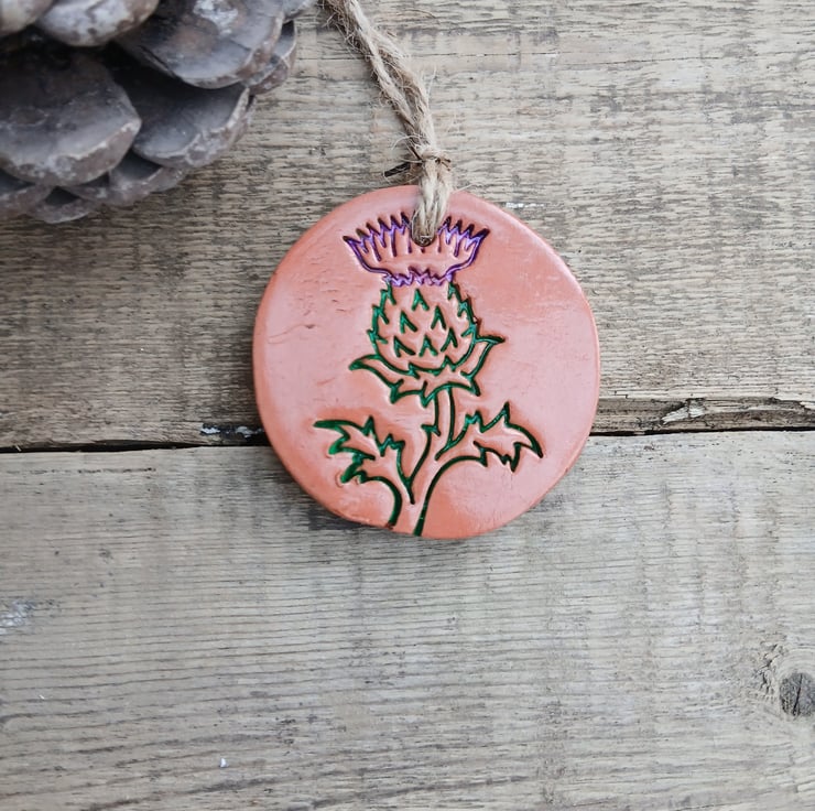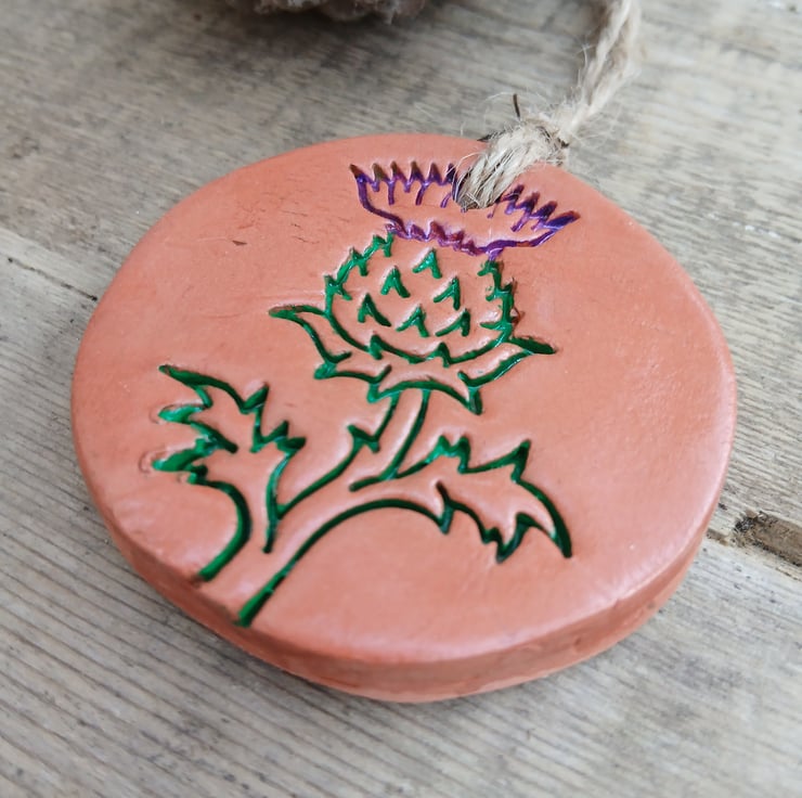 Painted Scottish Thistle Round Terracotta Hanging Aromatherapy Diffuser Ornament