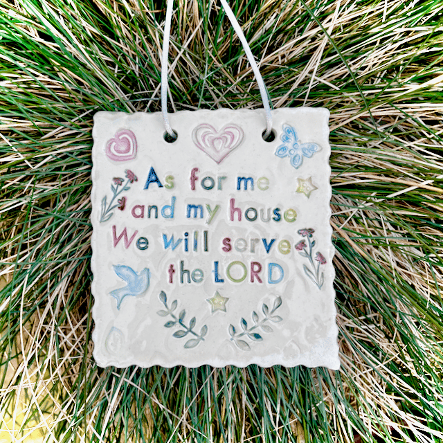 This is a sweet ceramic wall hanging carrying the well-loved verse: