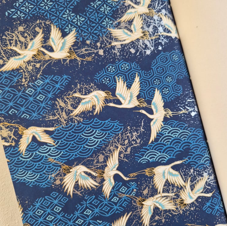 Japanese Chiyogami Paper is so beautiful and soft. Of all the types of paper I use for my Journals this is my favourite. When the paper is bonded to the leather it's like it was meant to be, they feel like one fabric. Each design is hand screen printed in Japan. I have lots of other Chiyogami patterns available.