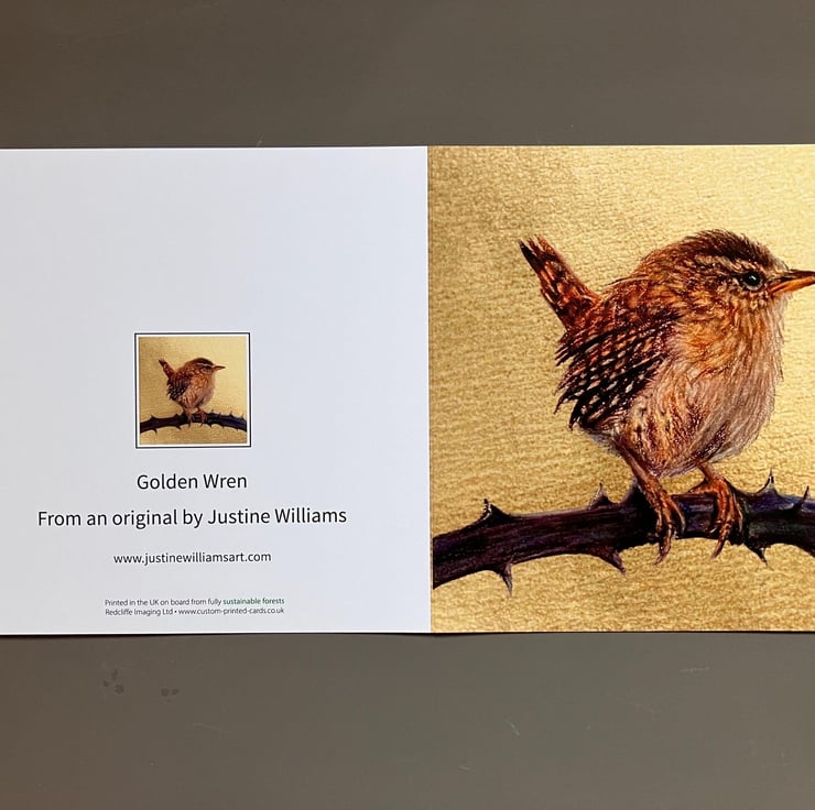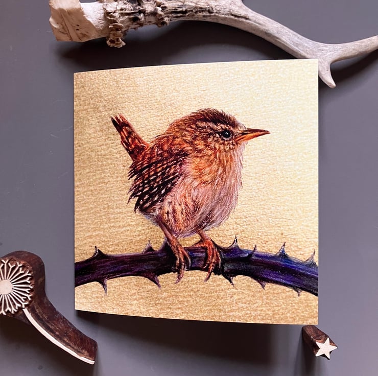 Original Artistry: The card showcases a meticulously detailed wren, reproduced from an original drawing by Kent-based pencil artist Justine Williams. Known for her photo-realistic style, Justine captures the "quiet rhythms of nature" to offer the recipient a sense of stillness and calm.