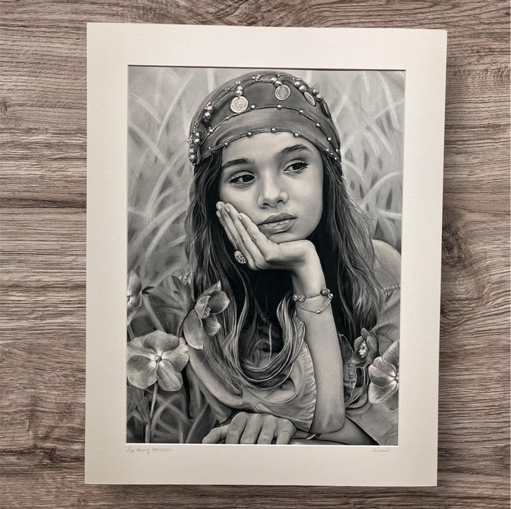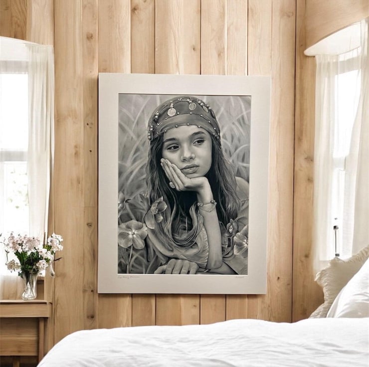 Crafted with archival inks on museum-grade paper, each gicl e print in this exclusive limited run offers exceptional color fidelity and longevity, ensuring the artwork remains vibrant for generations. It is a compelling piece that evokes a sense of peace and natural beauty, perfect for collectors and art enthusiasts seeking a unique and evocative portrait.