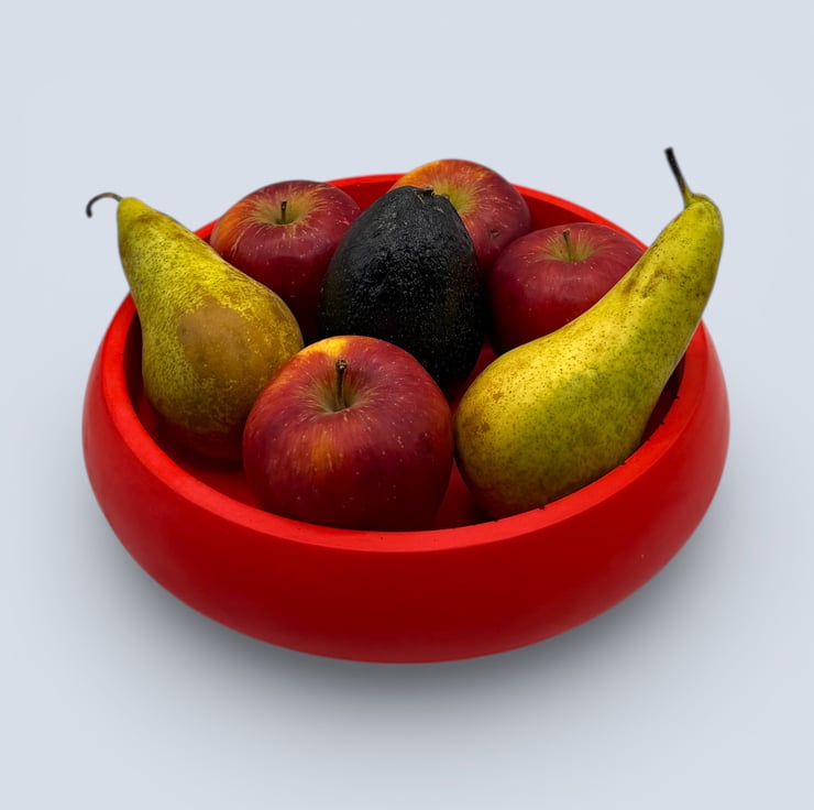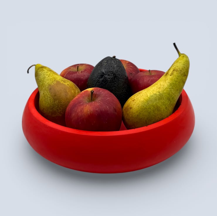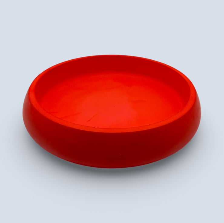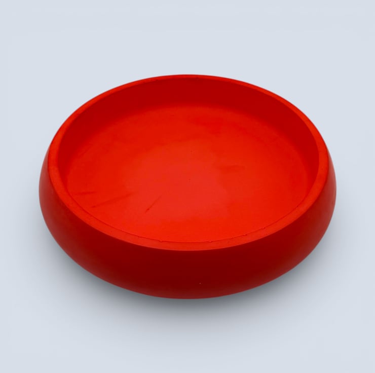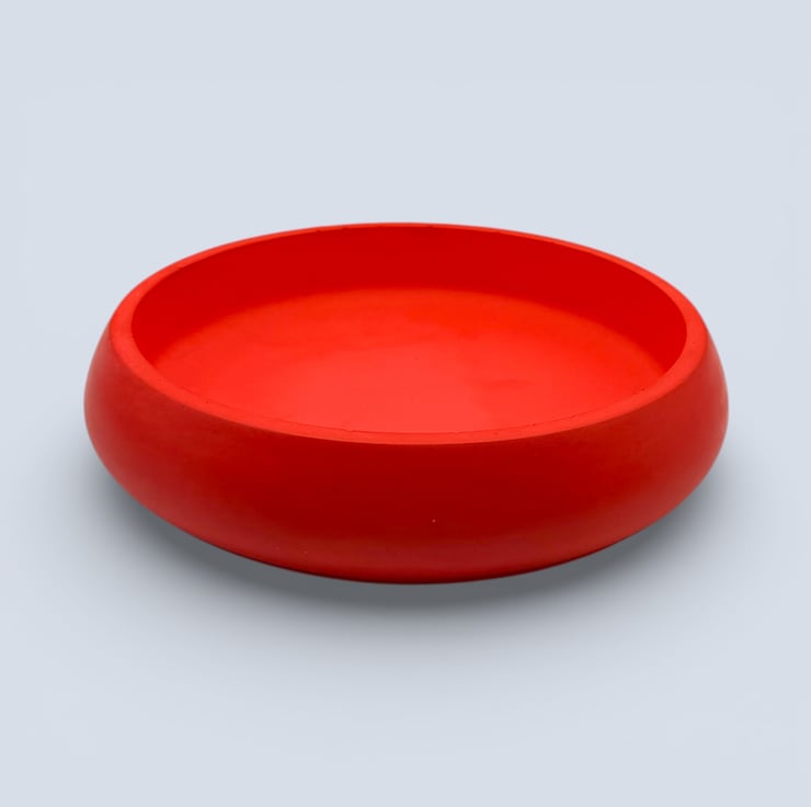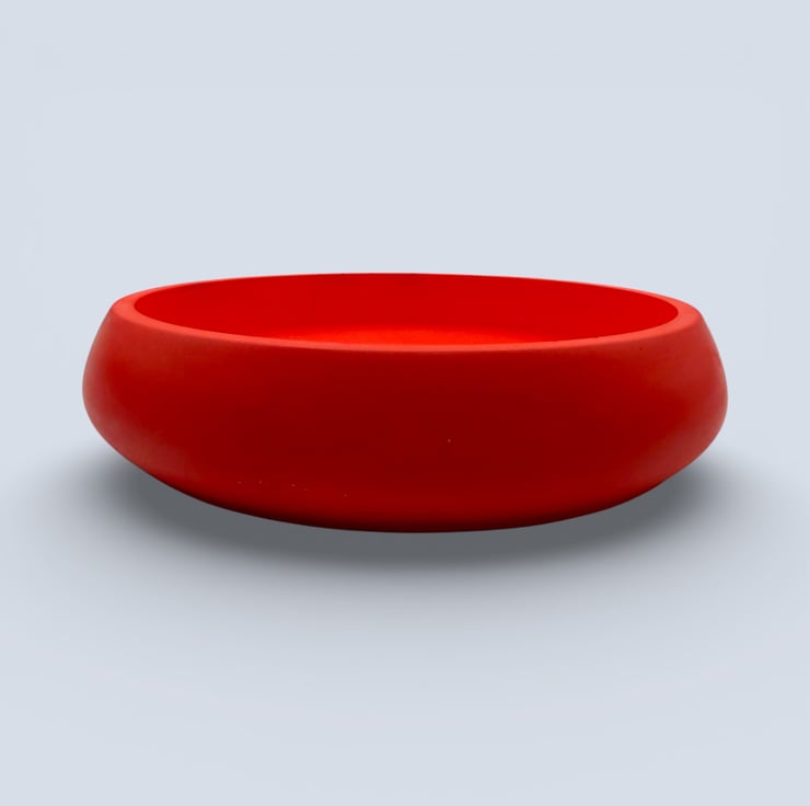 The bowl is handmade in my home studio from a natural, water-based mineral material with a hard, stone-like finish. Its smooth, gently rounded shape feels substantial and tactile, while the rich red colour creates a striking contrast against natural wood and neutral interiors. Each piece is individually made, and small air bubbles or subtle surface variations are part of the handmade process and make every bowl unique.