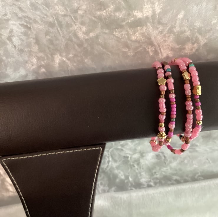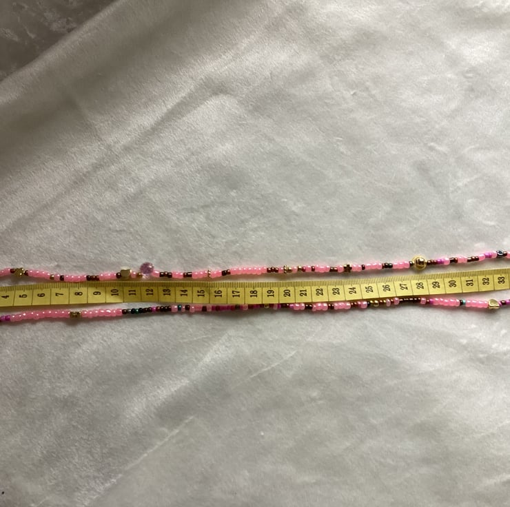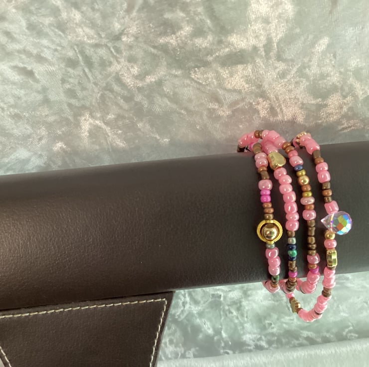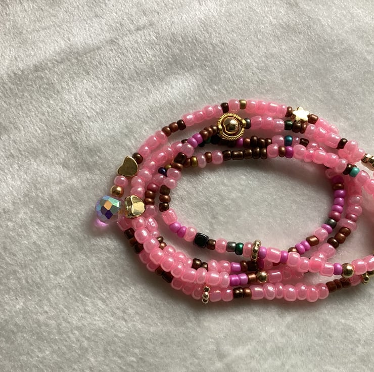 Handcrafted by me in my home studio in West Midlands. This beaded string made from different beads , metals ones, plastic ones, different charms ,colours and textures. Approx 72 cm size, can go around your wrist 3-4 times. For better strength I always use Stretch Magic 0.7mm Bead Cord . Please note: Colours may vary due to different viewing platforms and devices.