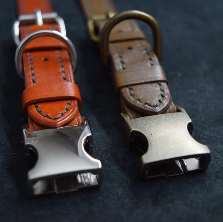 Each collar is made slowly by hand using premium vegetable-tanned leather and traditional leatherworking techniques. Designed to sit comfortably on your dog, feel good in the hand, and age beautifully with use.