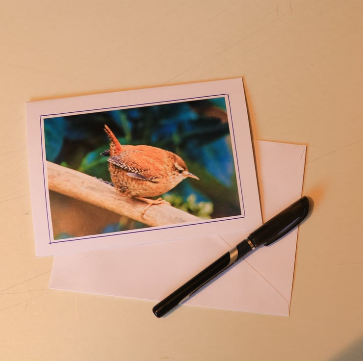 Celebrate the delight of garden birds with this art card featuring an original photograph of a Wren busy feeding in the garden. Always on the move, never very still for long flitting through the foliage busy feeding.. Printed on high-quality card stock, blank inside for your own message. Perfect for birthdays, thank-yous, or seasonal notes. Comes with a plain white envelope.