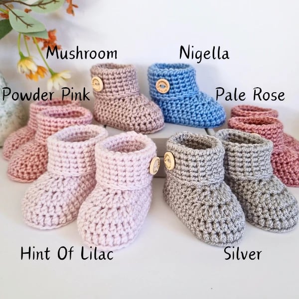 Each pair of newborn booties is handmade to order using soft, baby-safe yarn and presented in a compact gift box, making it perfect for a surprise reveal.