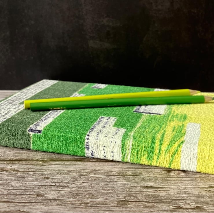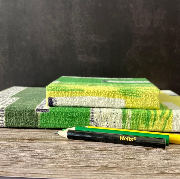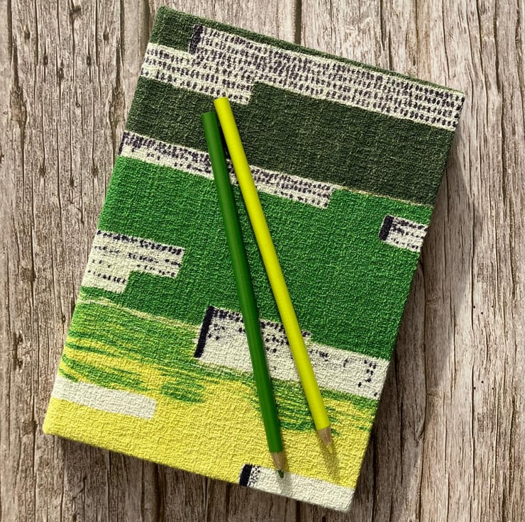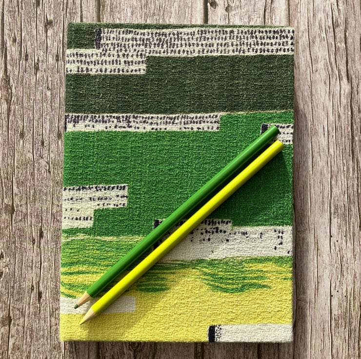 Handmade A5 'Green Shoots' Journal made with 1950's Vintage Barkcloth Fabric