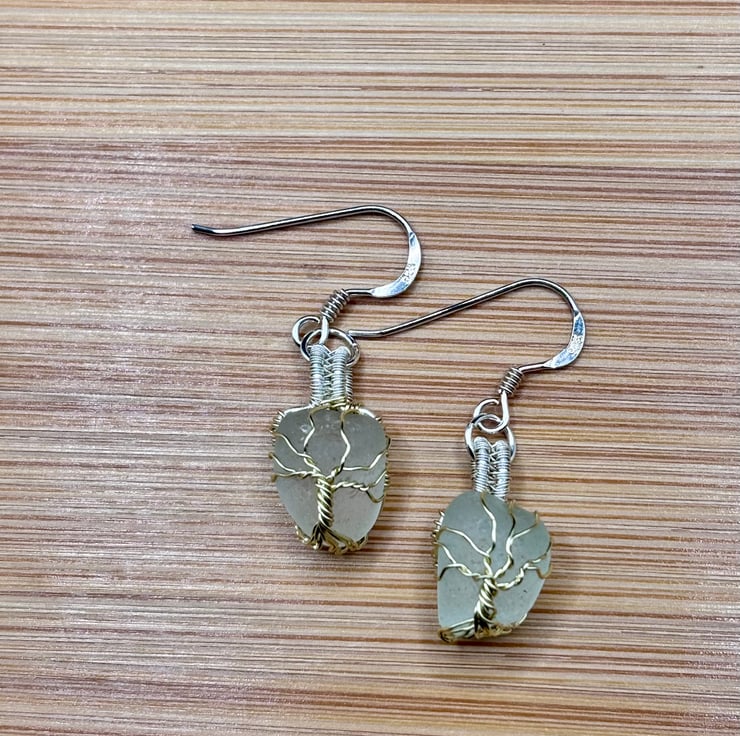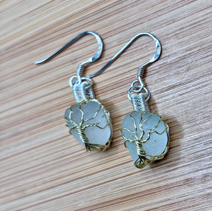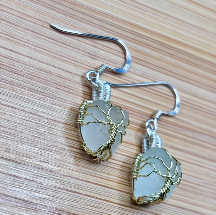 We have created a beautiful pair of Scottish sea glass earrings. The fish hooks are Sterling Silver. The sea glass wrapped using enamelled copper jewellery wire. They will look absolutely gorgeous all year round!