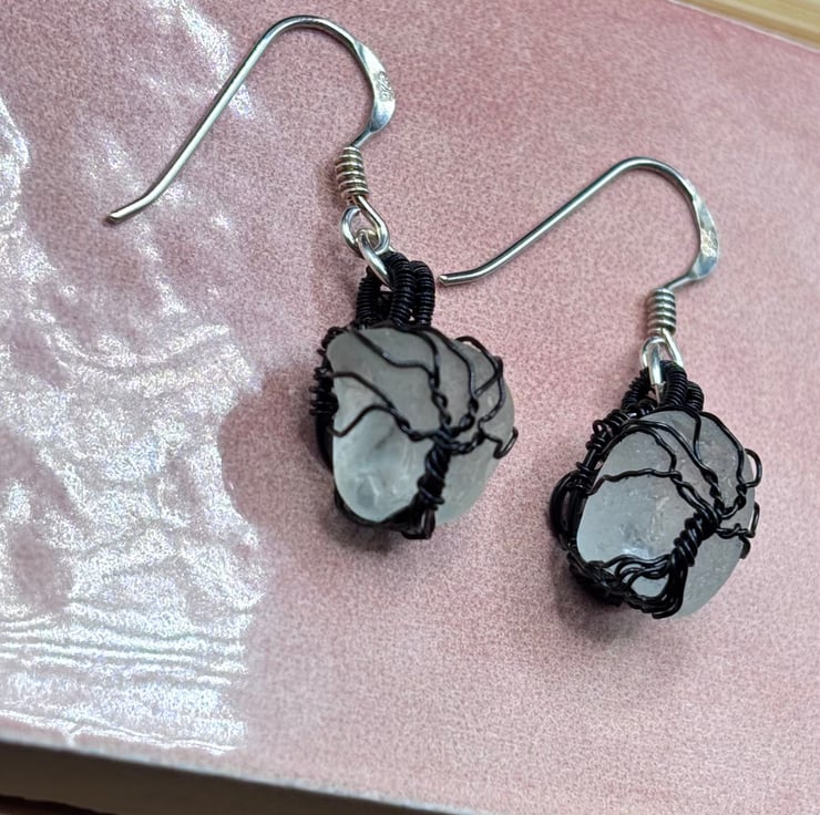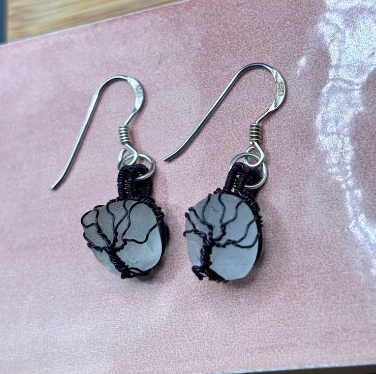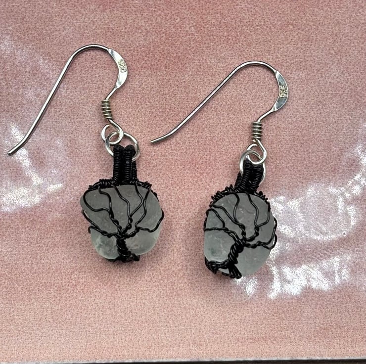 We have created a beautiful pair of Scottish sea glass Tree of Life earrings. The fish hooks are Sterling Silver. The sea glass wrapped using enamelled copper jewellery wire. They will look absolutely gorgeous all year round!