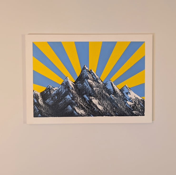 This composition is a deconstruction of a classical sunset by breaking down the elements of a sunset which showcases a highly textured mountain range