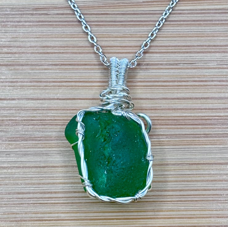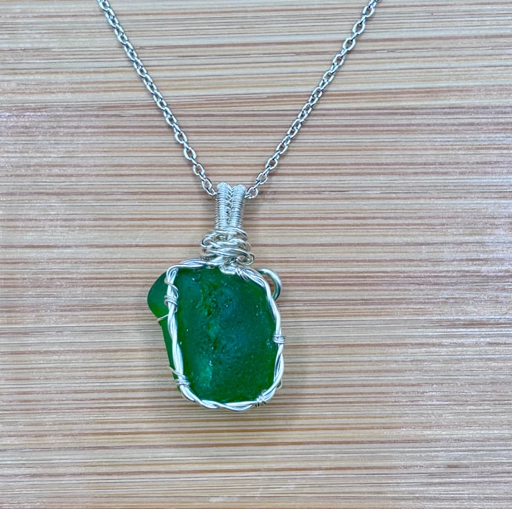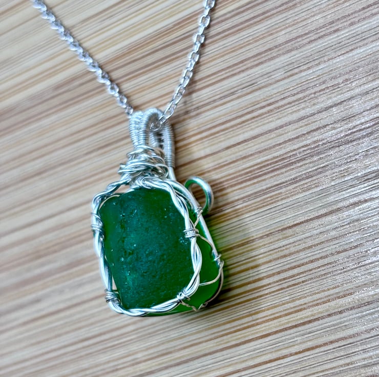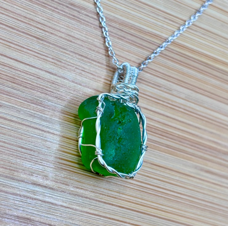 We have created a gorgeous Scottish sea glass necklace. The pendant includes a 20" Sterling Silver trace chain. The sea glass wrapped using enamelled copper jewellery wire. The green sea glass, that we have collected, is absolutely stunning!