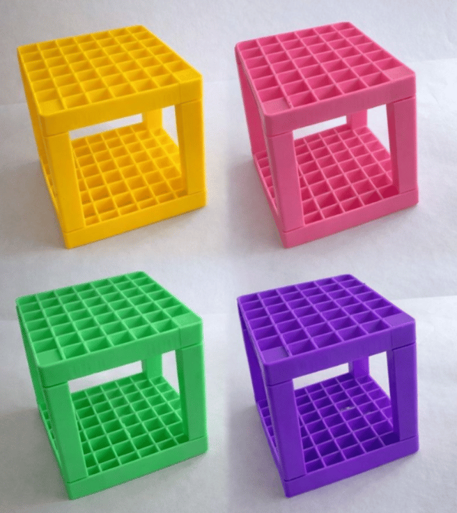 This 3D printed holder is a practical and colourful way to organise pencils, pens, paint brushes, markers, and other stationery or art tools. The open cube design allows easy access from all sides while keeping everything neatly upright and visible.
