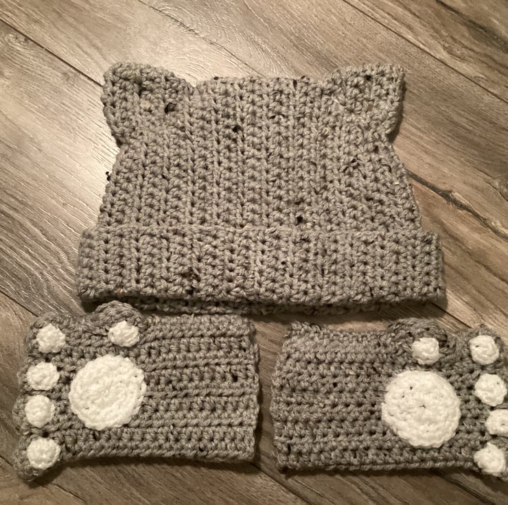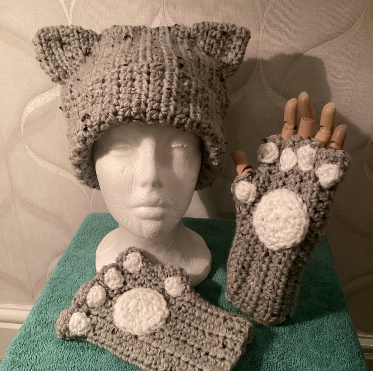 Made with chunky yarn (acrylic/ wool / viscose mix)