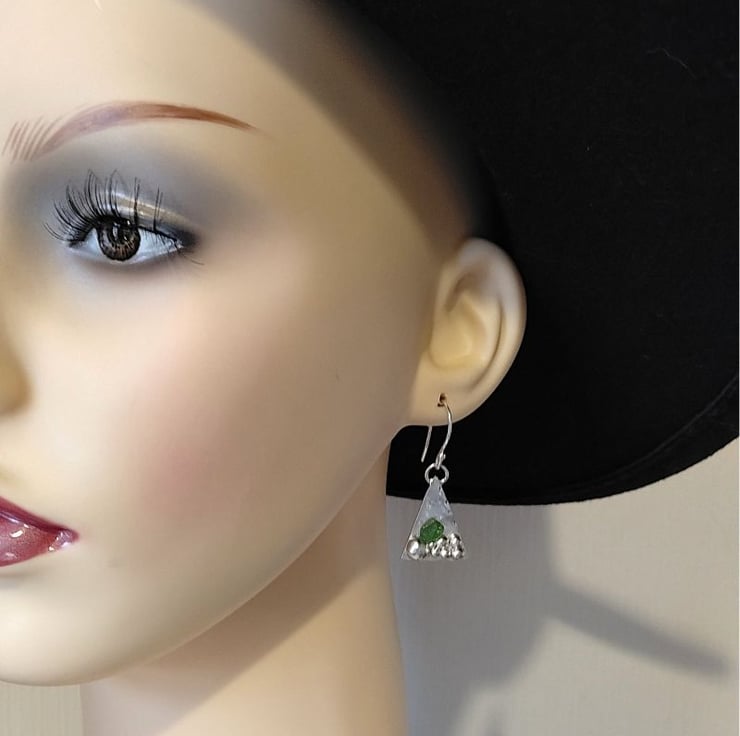 Silver pebbles and green seaham seaglass triangle earrings, its like finding seaglass amongst the pebbles at the beach.