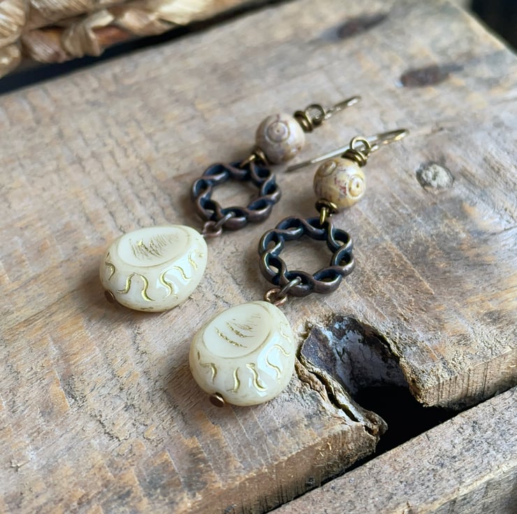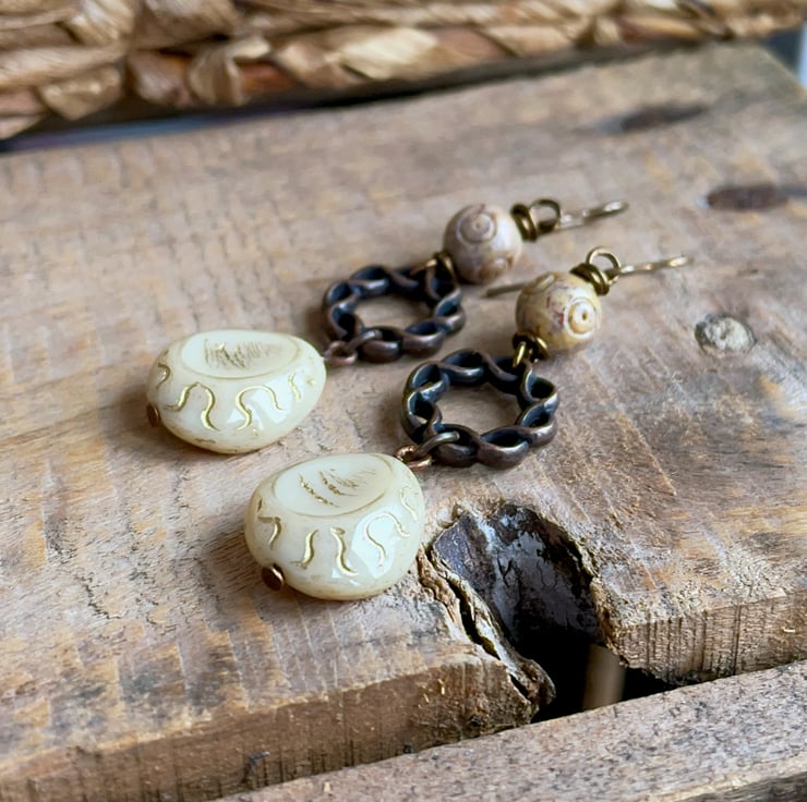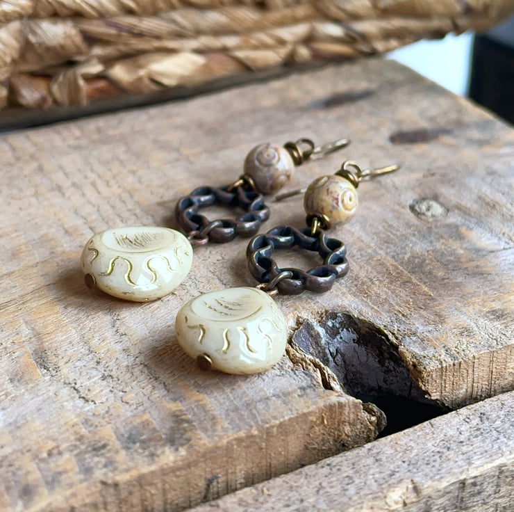 A timeless pair of handmade earrings, ideal for those who love neutral jewellery with a soft vintage feel.