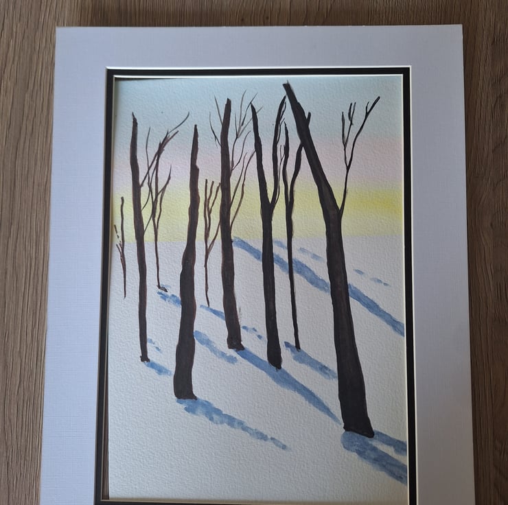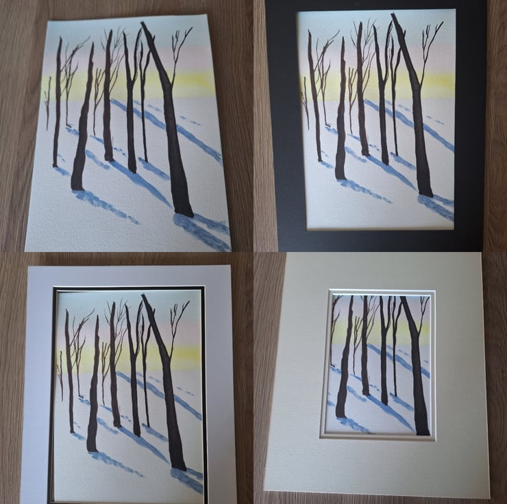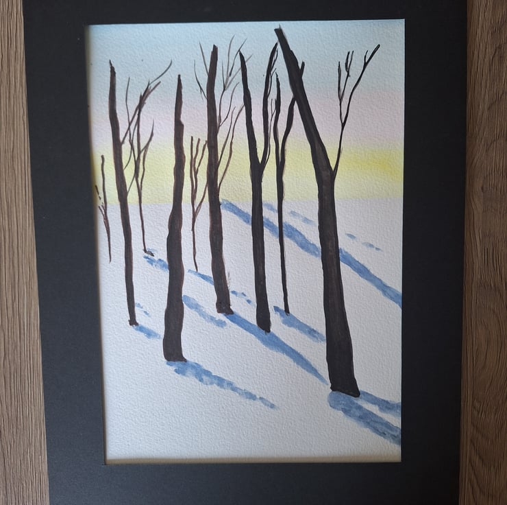 A4 watercolour painting borders display purposes only minimalistic winter woodland.