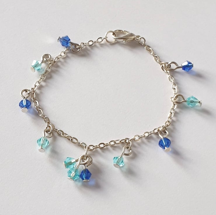 This pack makes an elegant bracelet with a mix of blue, glass bicone beads.