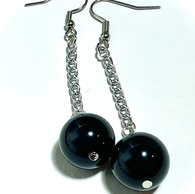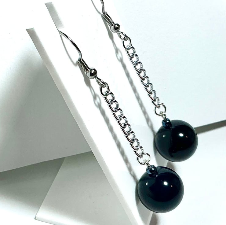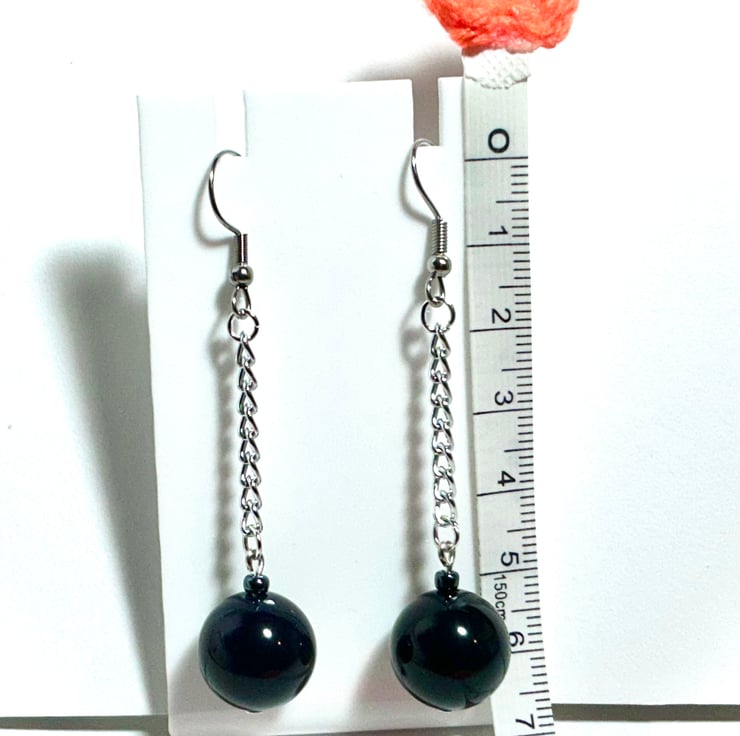 These earrings are made in a simple single bead style and the stone beads are a very dark Navy colour which appears almost Black.