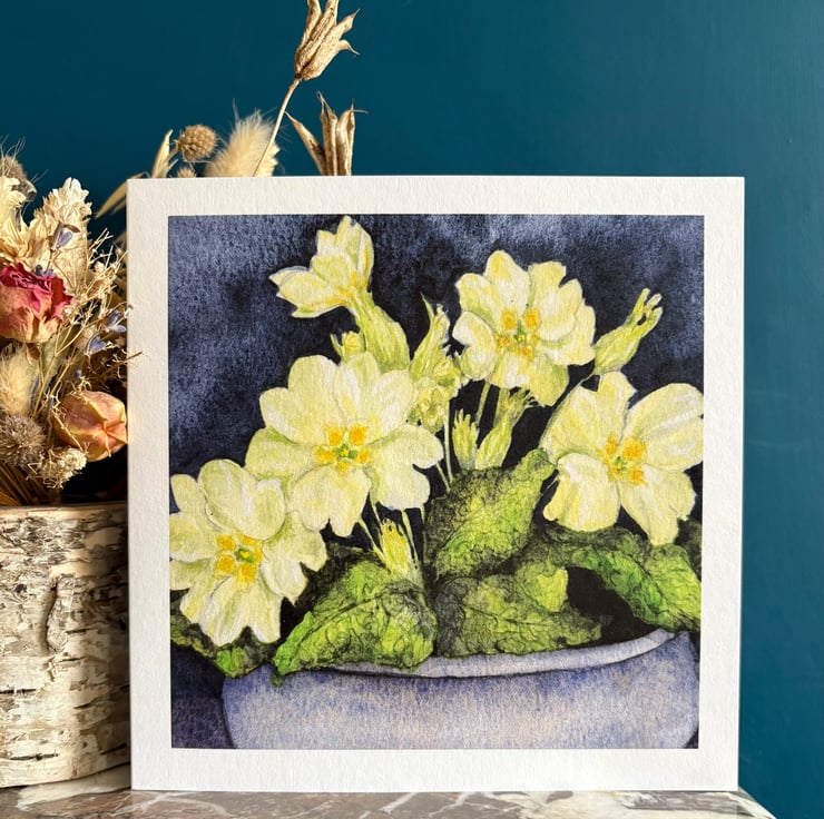 The cards are A6 in size - 150mm x 105mm, apart from Pot of Primroses which is 150 x 150mm. All printed on board from fully sustainable forests, paired with a 100% recycled envelope.