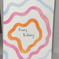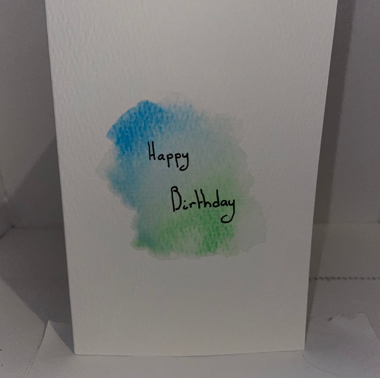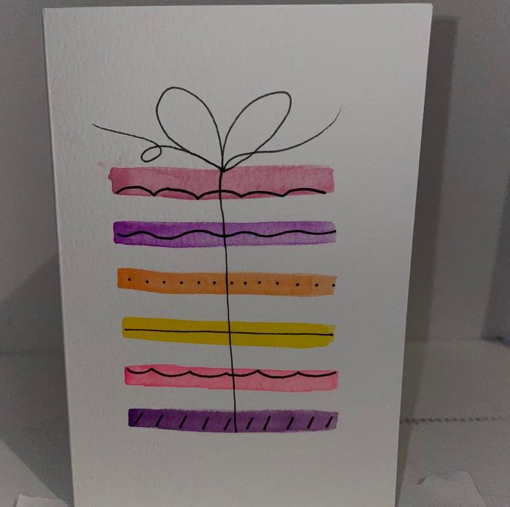 Homemade birthday cards set of three.one sunflower, another card with happy birthday on it and one other card with a colourful present on it.