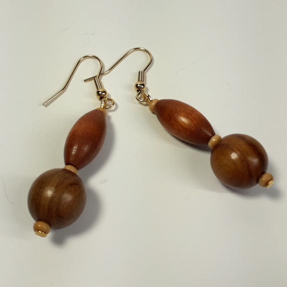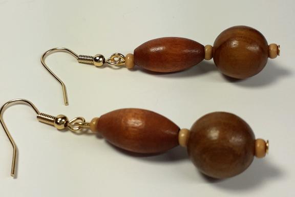 These wooden bead earrings match the oval pendant necklace I also have in my shop, they are made with 10cm round and 15cm ovals, they are 5.5cm long including the surgical steel hooks.