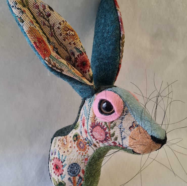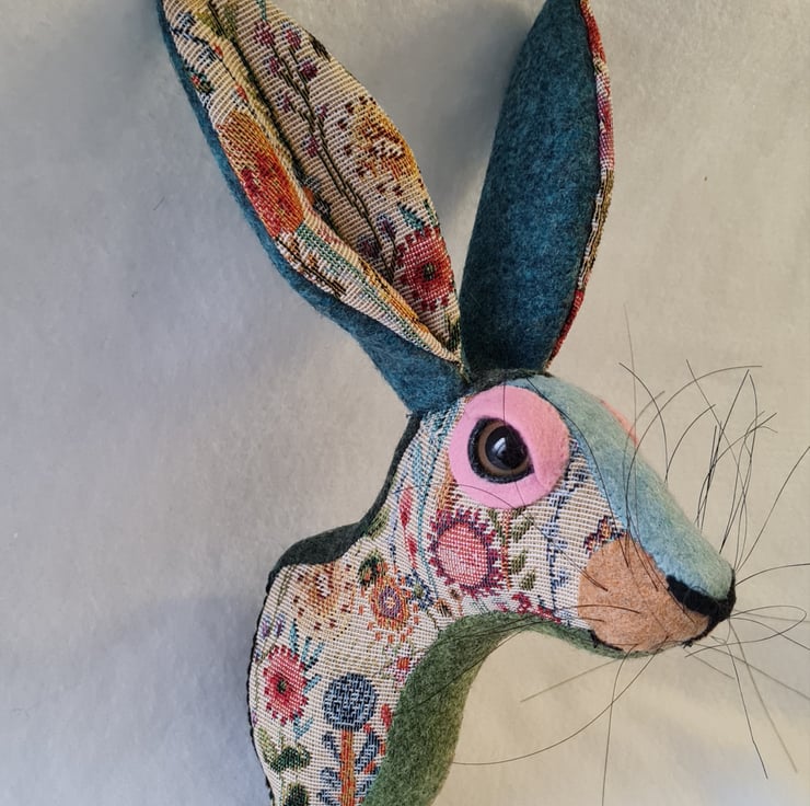A lifesize faux hare which I have handmade and covered in hand stitched Kew Gardens floral upholstery fabric.