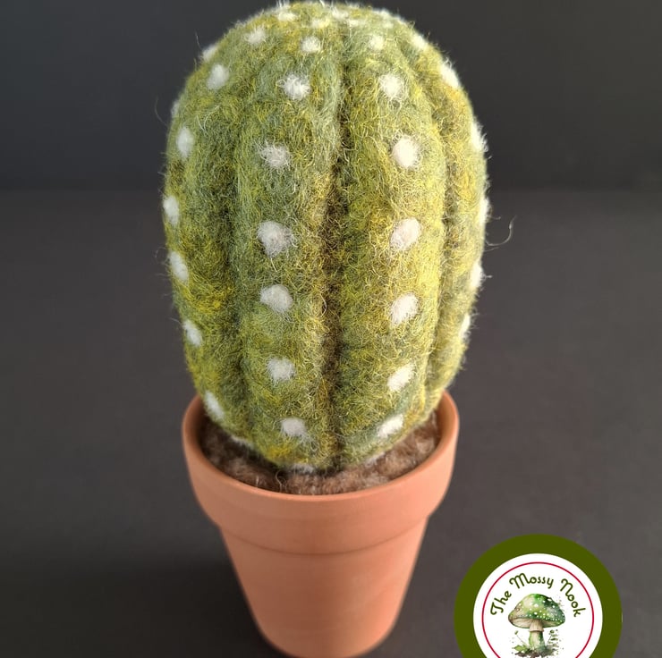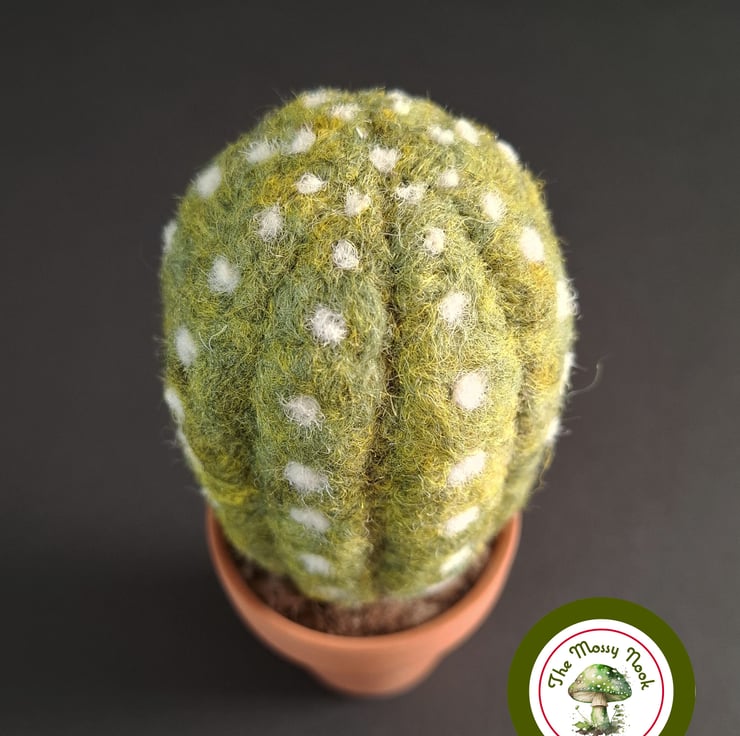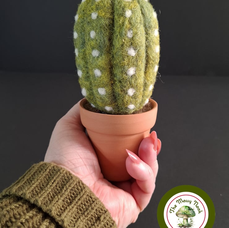 I hand made this large cactus by needle felting, using 100% natural wool fibres. The cactus sits in a real terracotta plant pot, which adds to its realism and looks super cute.