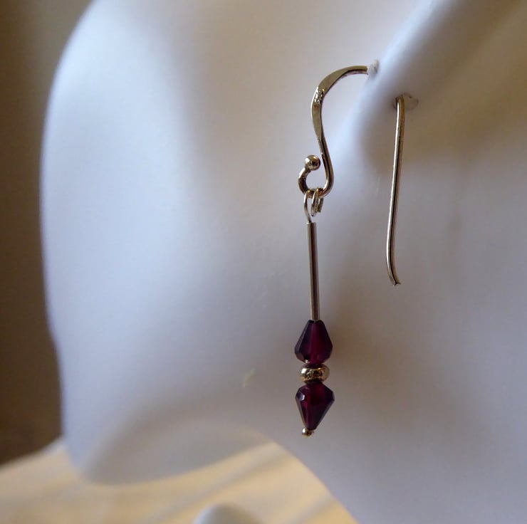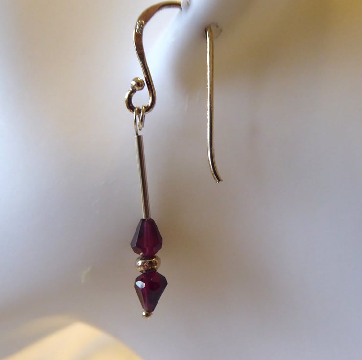 Sterling Silver & Rhodolite Garnet Pear Earrings - Capricorn January Birthstone