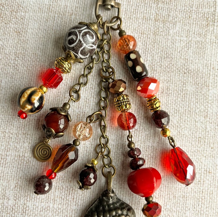 This handmade bag charm has a boho vibe and would add a lovely splash of colour to your bag. It would also be perfect for anyone with a January birthday as it has garnet beads in the mix which is the birthstone for January.