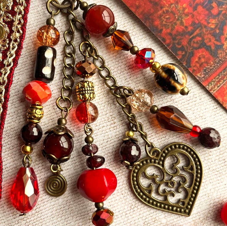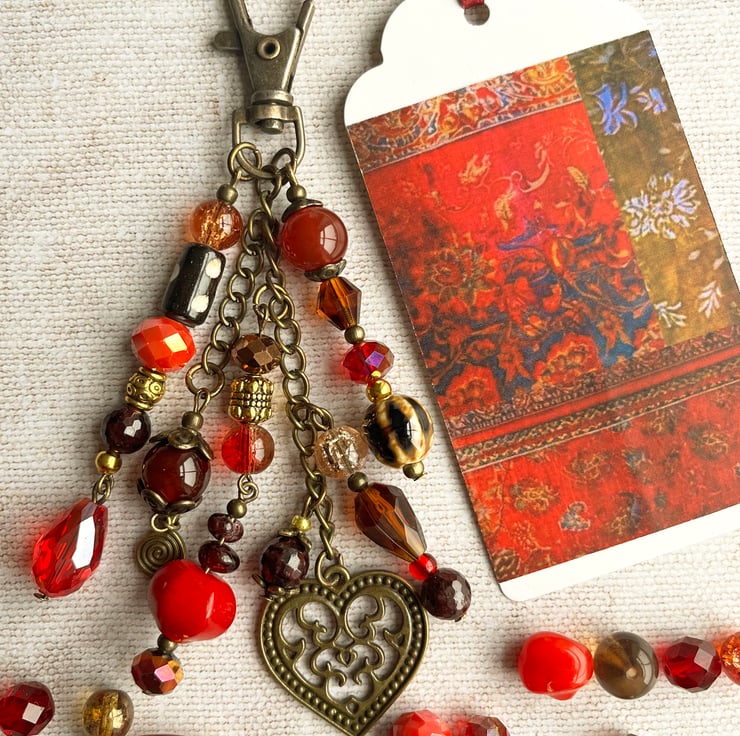This handmade bag charm has an opulent boho vibe and would add a lovely splash of colour to your bag. It would also make an ideal gift for anyone with a January birthday as I've included Garnet beads which is the birthstone for that month.