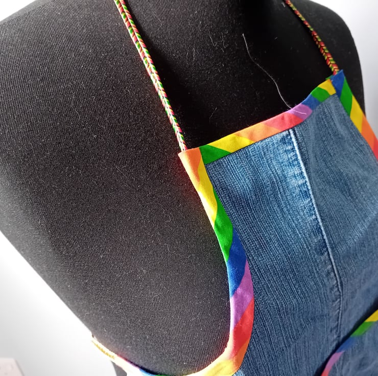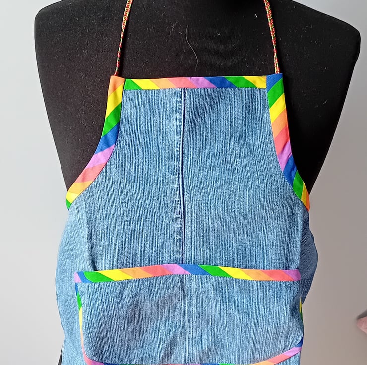 Children's Denim Apron - Rainbow Trim