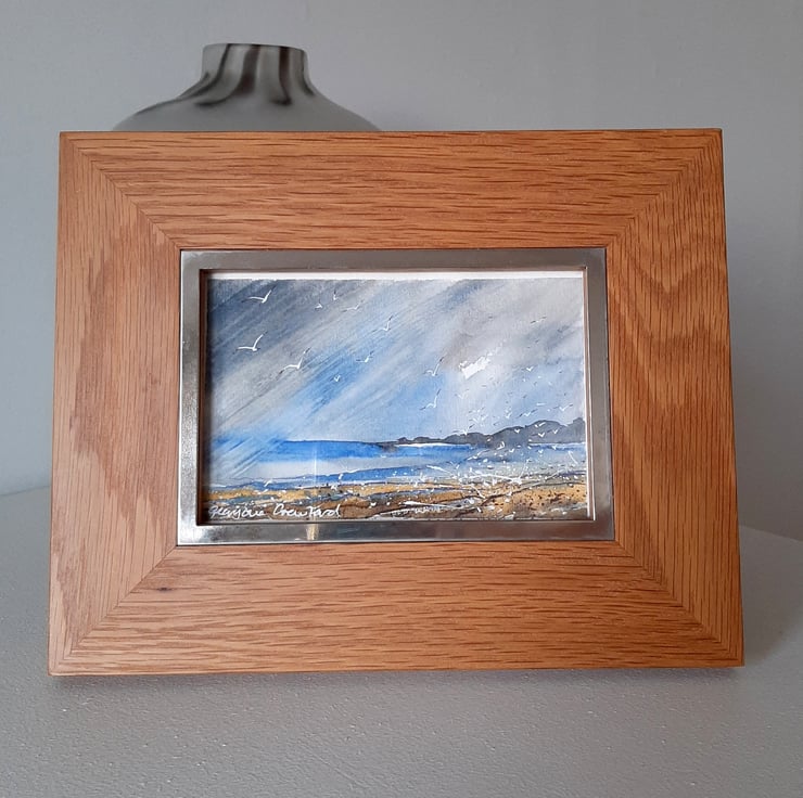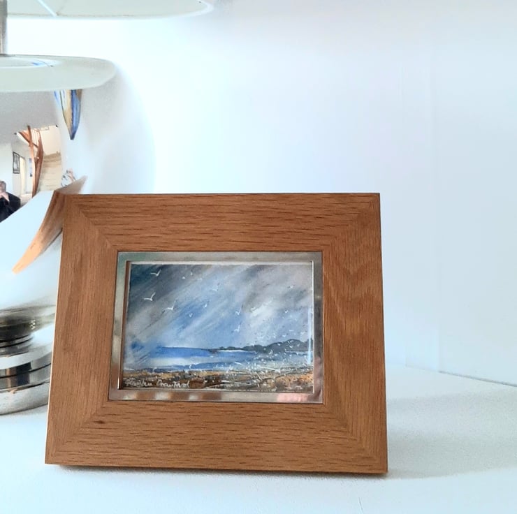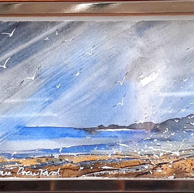 Rainy Ocean with Gulls. Framed Painting. Watercolour