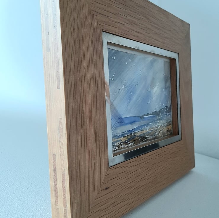 Frame is substantial and measures 20 x 25cm and 2cm thick. Wooden surround with burnished metal inlay.