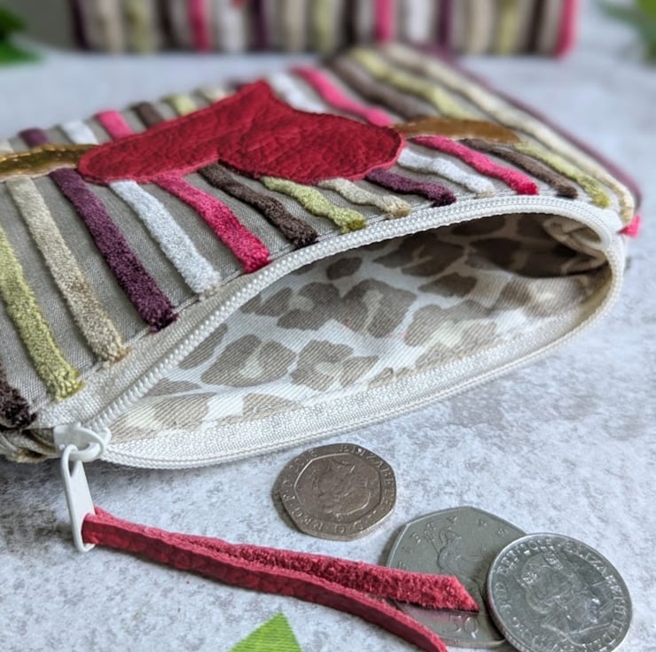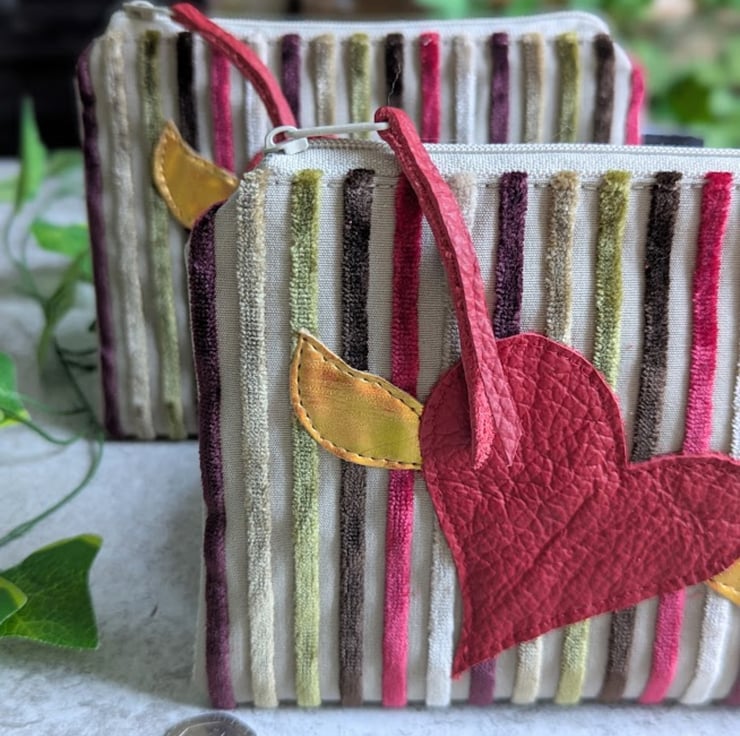 These striped chenille pouch purses have been handmade using a hardwearing upholstery fabric. The perfect little treat or valentines gift for someone you love (or maybe yourself!)