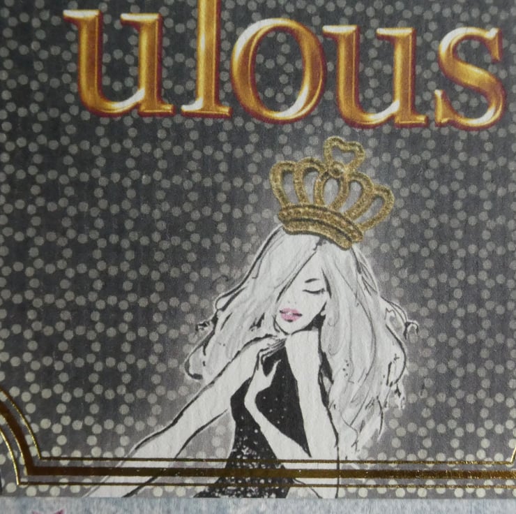 The main focal image has the message 'You Are Absolutely Fabulous' against a black and cream geometric background with a young lady at the bottom, wearing a huge golden crown. It has been mounted onto background card with pink, white and silver stars against a pale blue/green background.