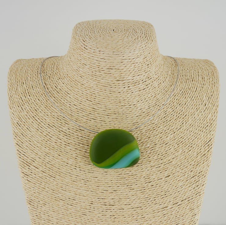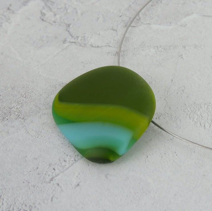 A tactile satin finish fused glass pendant in shades of green with a twist of turquoise - one of my favourite colour combinations!