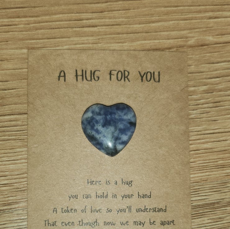 The gemstone heart will arrive attached to the message gift card in a gift bag. The heart can be removed easily so it can be carried with you at all time, ideal gift for people who maybe travelling or to show someone your love and support