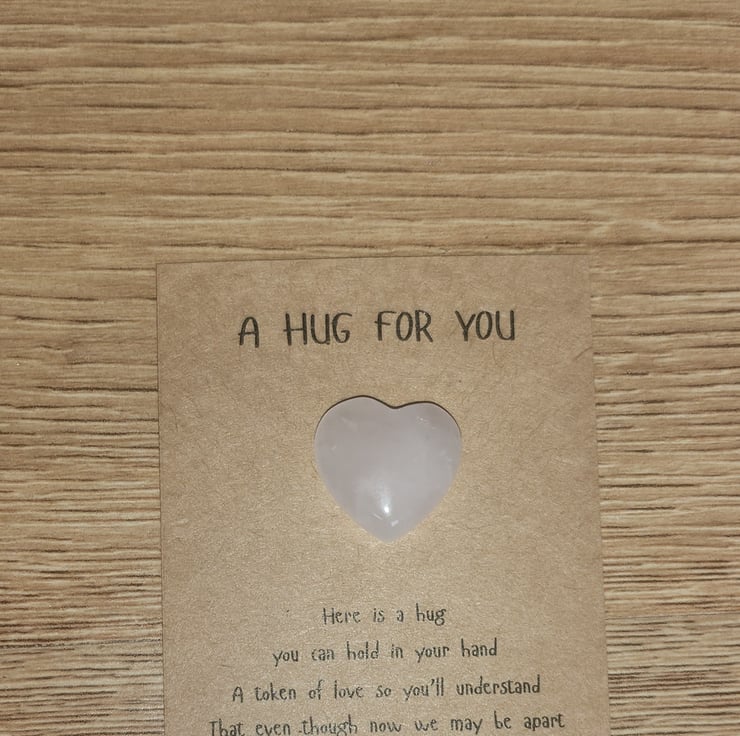 The gemstone heart will arrive attached to the message gift card in a gift bag. The heart can be removed easily so it can be carried with you at all time, ideal gift for people who maybe travelling or to show someone your love and support