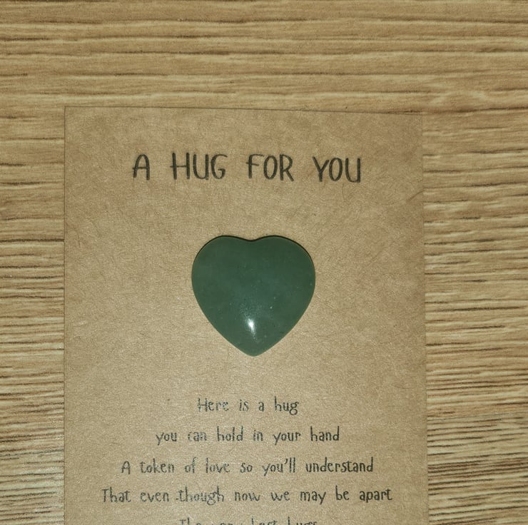 The gemstone heart will arrive attached to the message gift card in a gift bag. The heart can be removed easily so it can be carried with you at all time, ideal gift for people who maybe travelling or to show someone your love and support