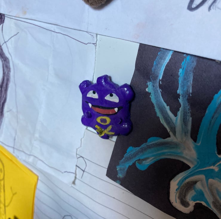 3.5cm x 3.5cm Koffing Pokemon magnet.. Home made Plasticine (Fimo) with 3M magnet. Add to your fridge, collection or as a fun gift..