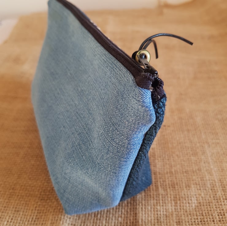 This zipped pouch/ makeup bag is made from remnants of curtain fabric. It would be ideal to pop in a small gift.