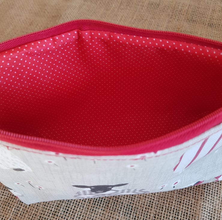 Zipped pouch: sheep with red.