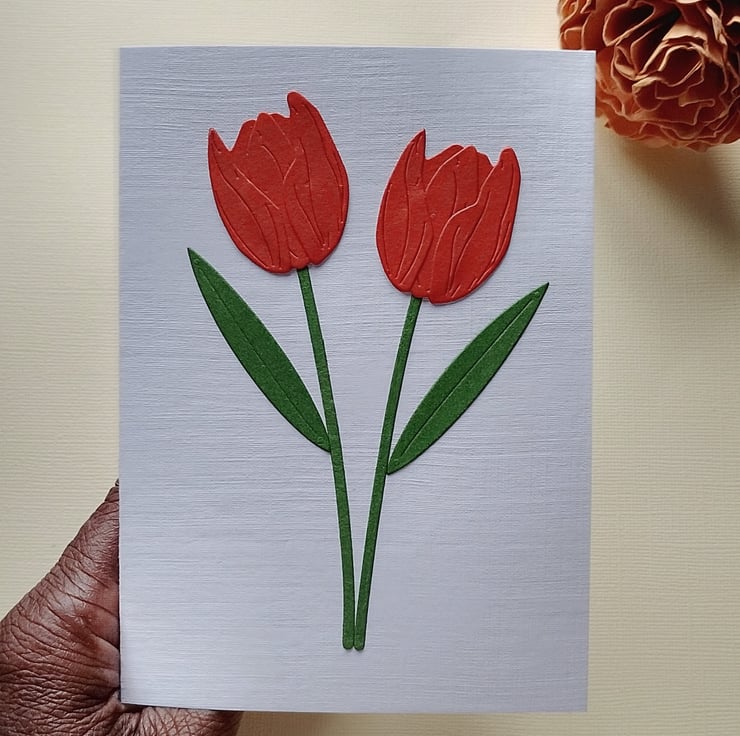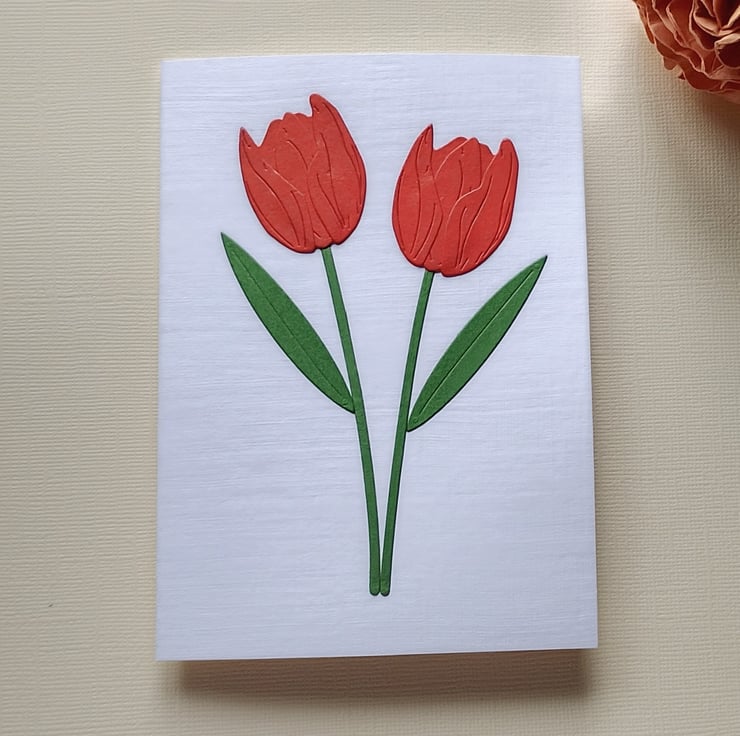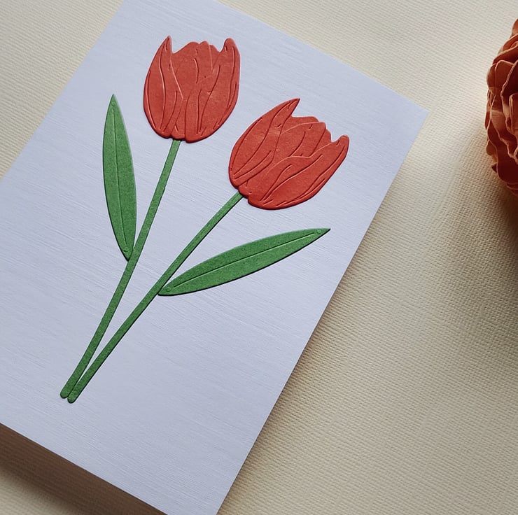 Burnt Orange Paper Tulip - Flower Shop Moments, Blank Handmade Floral Card